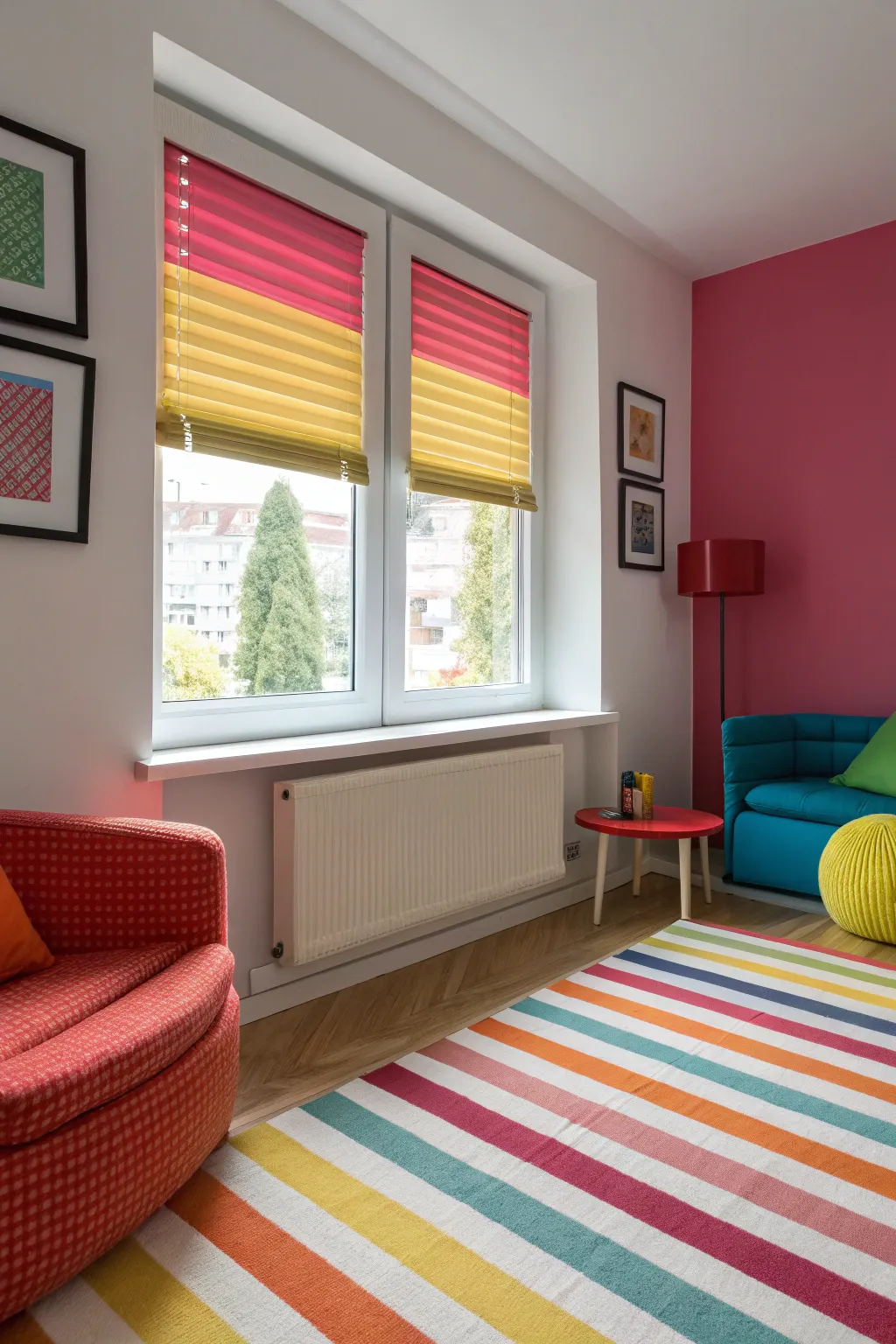 Hue-blocking with veilings fashions a contemporary, edgy aesthetic that can transform compact windows. I cherish experimenting with daring hue combinations to render a proclamation.