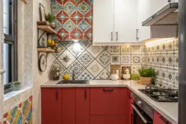 Add a burst of color using a vibrant table focus piece. It draws attention and adds personality to your cooking space without taking up extra area.