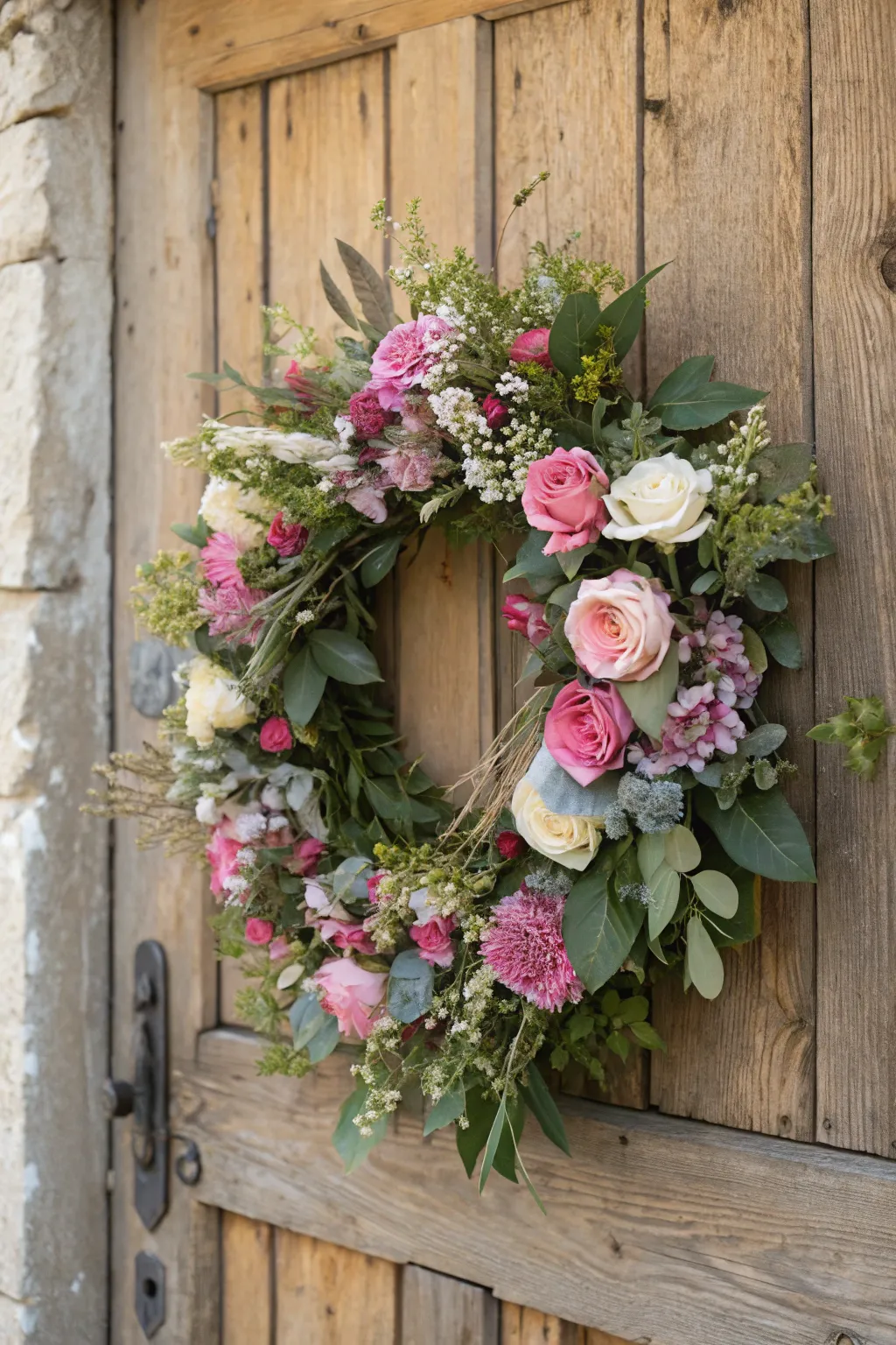 A romantic wreath filled with timeless silk blooms.