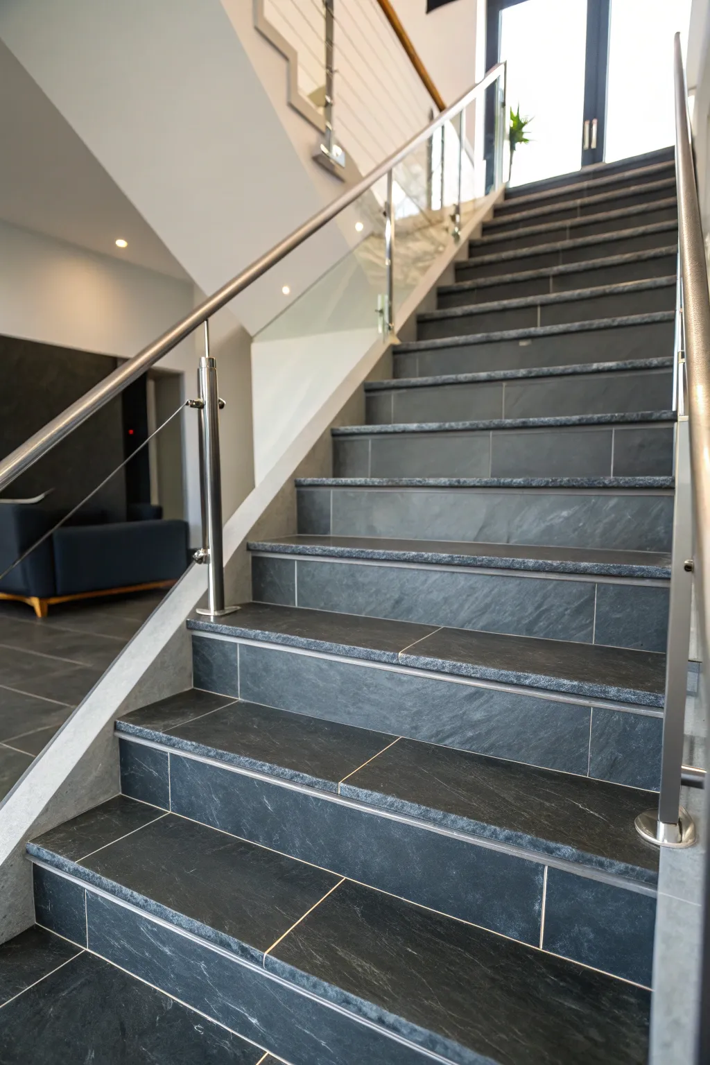 • Stone Tile Enhancements: Elevate the aesthetic of your staircase with our durable and refined stone tile solution today.