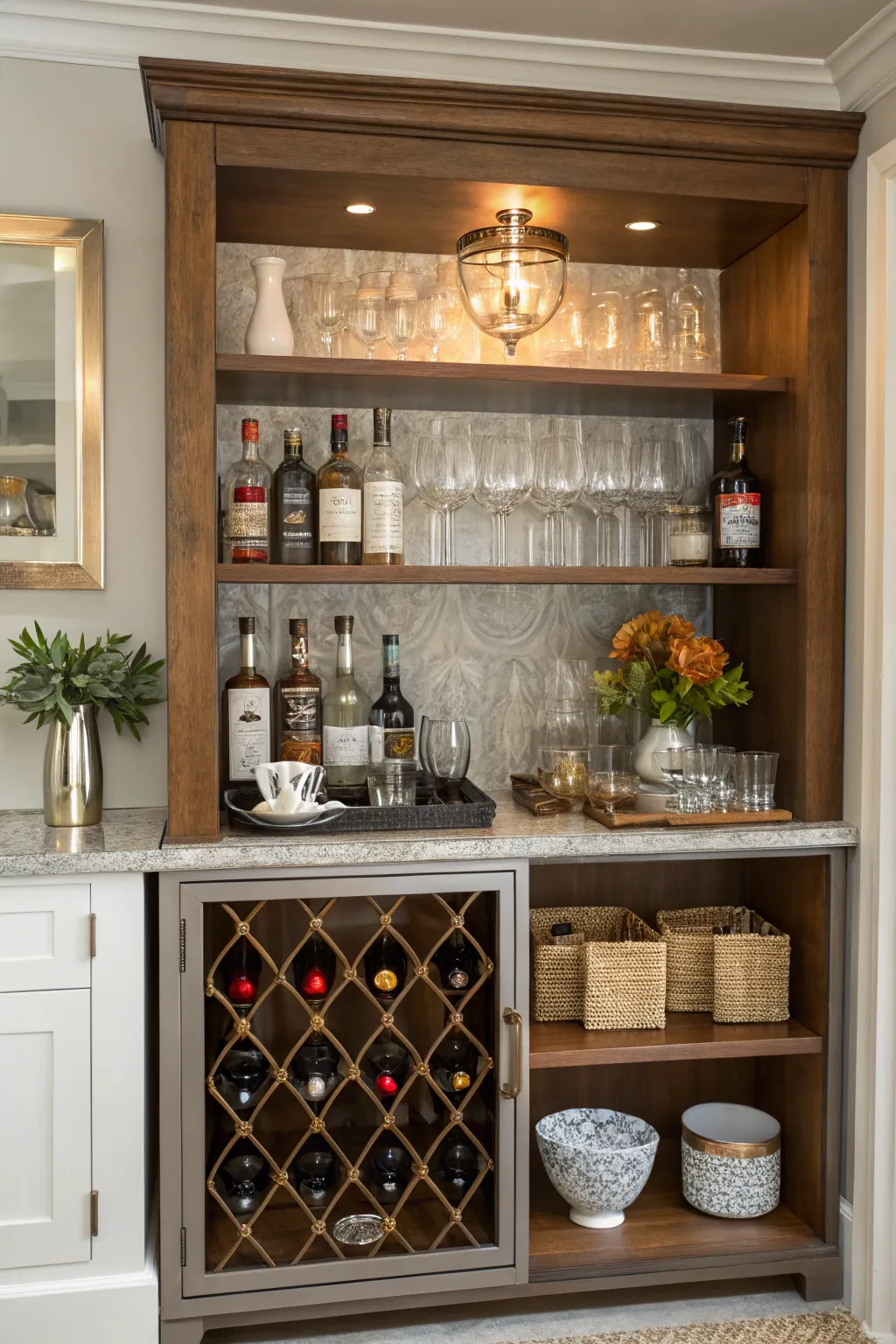 - Opulent Timbered Wine Storage: Elevate your area with an opulent timbered wine storage unit for a hint of timeless sophistication.