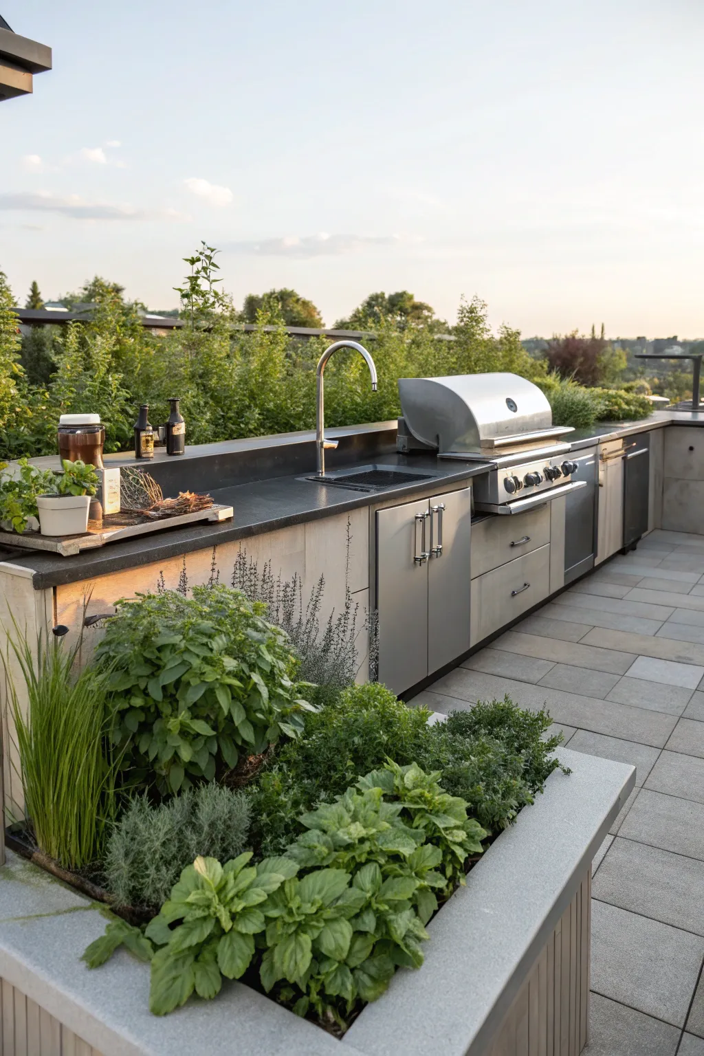 An integrated herb garden is ideal for fresh ingredients right at your fingertips. I revel in the ease of picking herbs precisely where I cook.