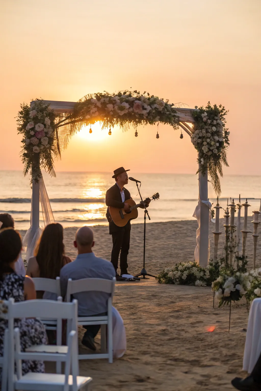 • Romantic Seaside Twinkle Lights: Mesmerize your guests with inviting twinkle lights, weaving a magical ambiance throughout your sunset ceremony.