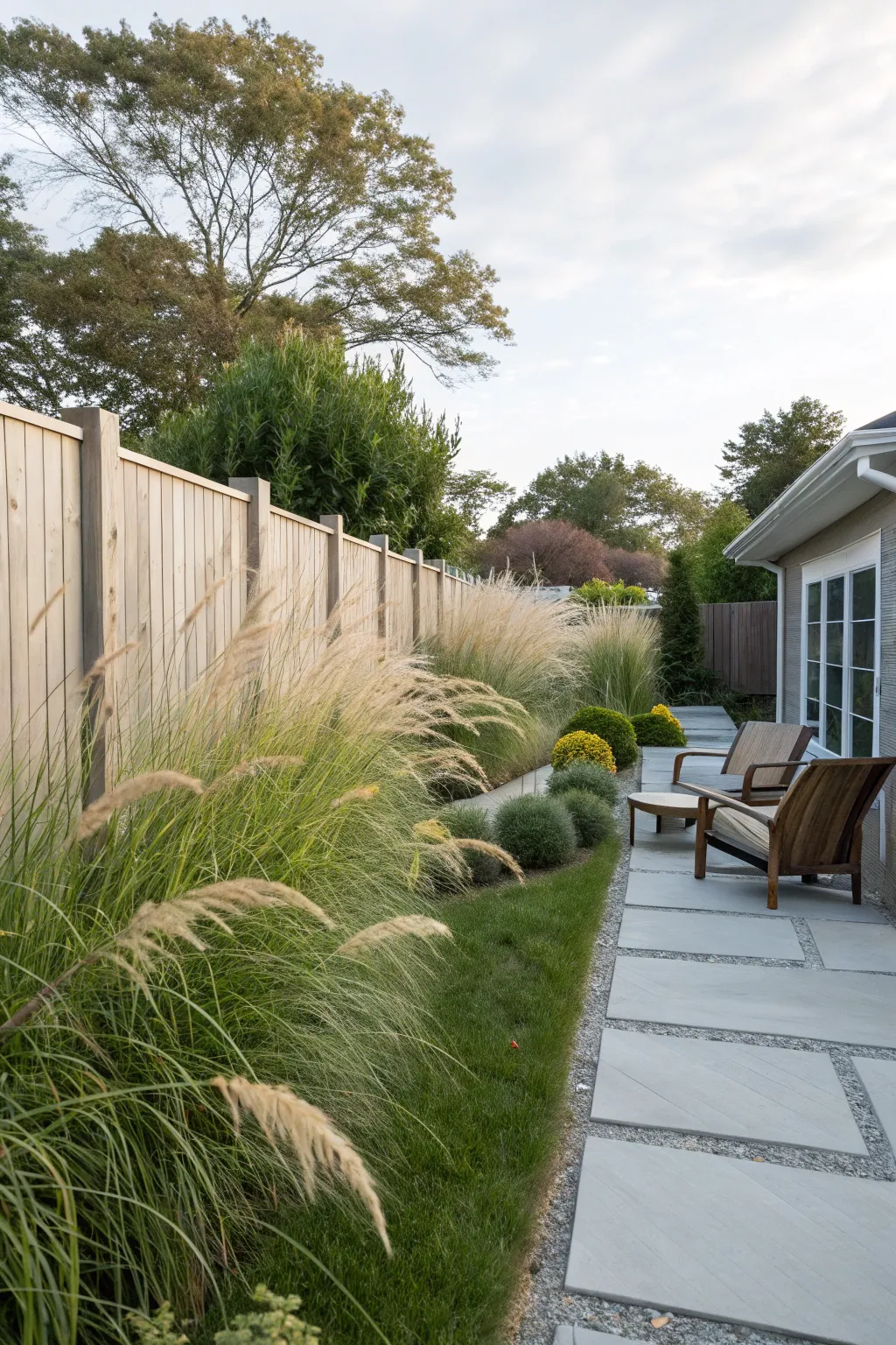 Soaring ornamental grasses can establish a stunning, organic privacy screen. They sway gracefully in the breeze, enriching the garden with movement and texture.