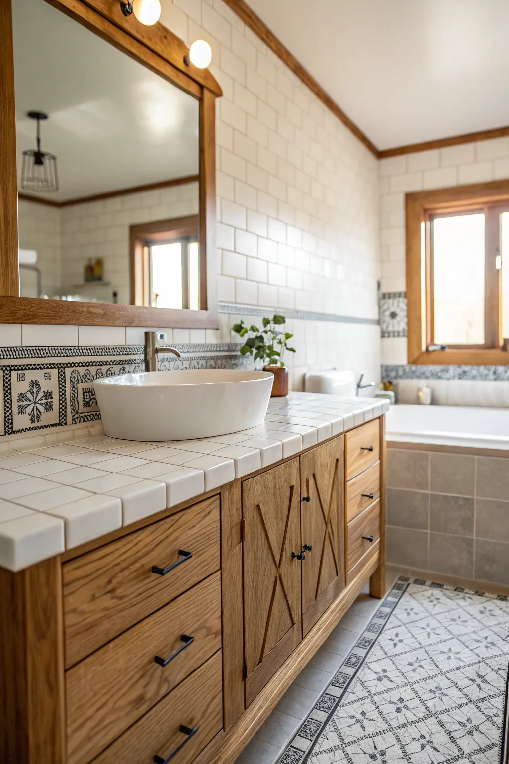 Greetings, fellow decor lovers! Let’s explore the charming world of tiled bathroom countertops today, a wonderfully adaptable and chic option for your home.