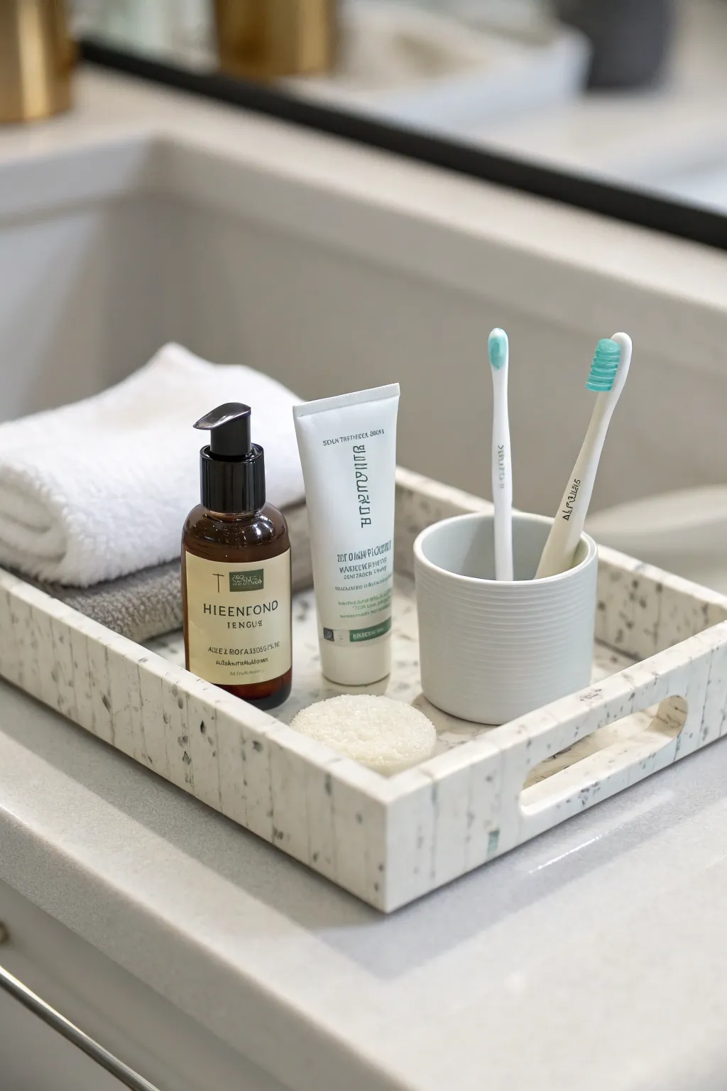 Practical arranging is essential for keeping things neat and tidy. I always tell people to group items together, like lotions, perfumes, and grooming tools, so they’re easy to get to and the area looks clean.