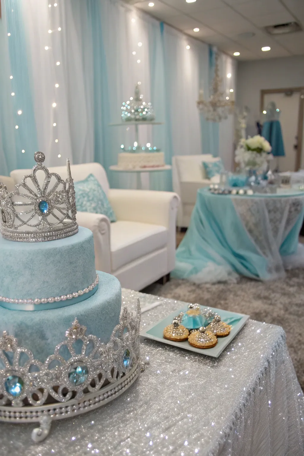 Indulge in an Glacial Queen Dream through elegant, icy decorations in hues of blue and metallic. Incorporating tiaras and shimmering accents can enable anyone to feel grand.